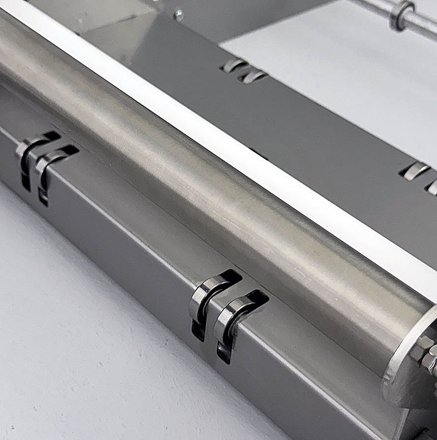 Experience a new level of control. Our motor-driven board glides on a rigid, 18-piece stainless steel bearing system, guaranteeing a honeycomb look croissant structure. This flawless, automated motion provides the stable foundation essential for perfectly even sheeting and uncompromised lamination.